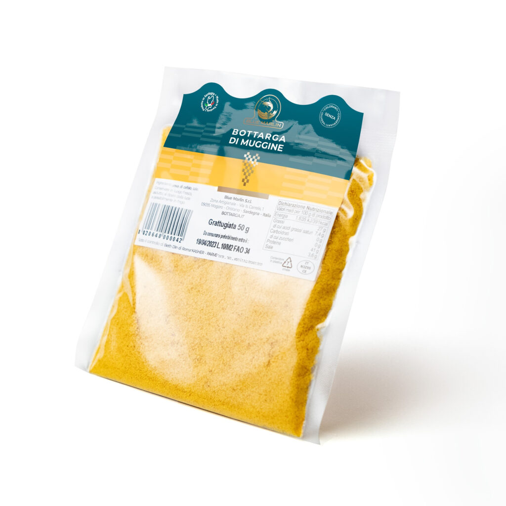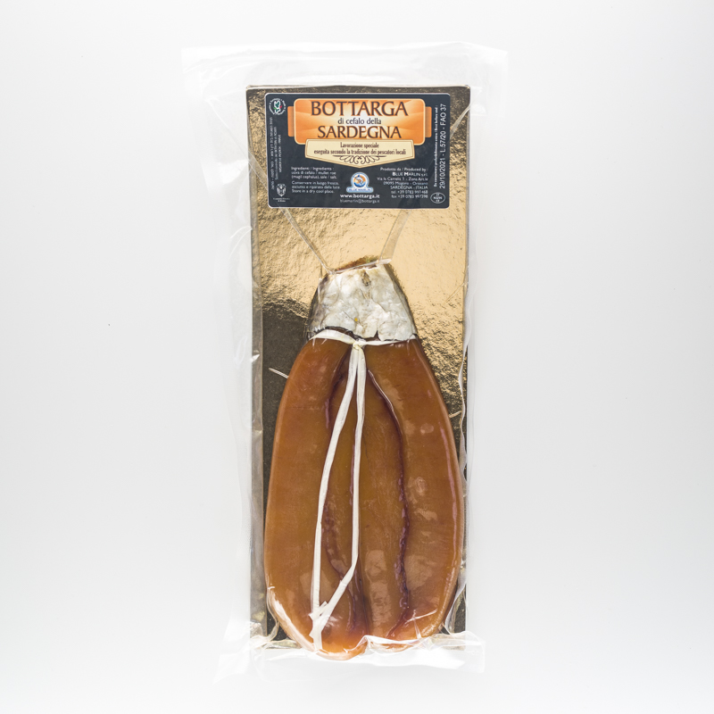 Mullet bottarga is a delicious Mediterranean product obtained from dried and salted grey mullet roe, known as the "gold of the sea" for its intense, slightly bitter
