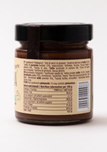 Ingredients: toasted hazelnut paste 15%, low-fat cocoa, whey proteins, cocoa butter, sunflower oil, rice flour, skimmed milk powder, sweetener: inulin, erythritol, emulsifier: sunflower lecithin.