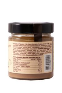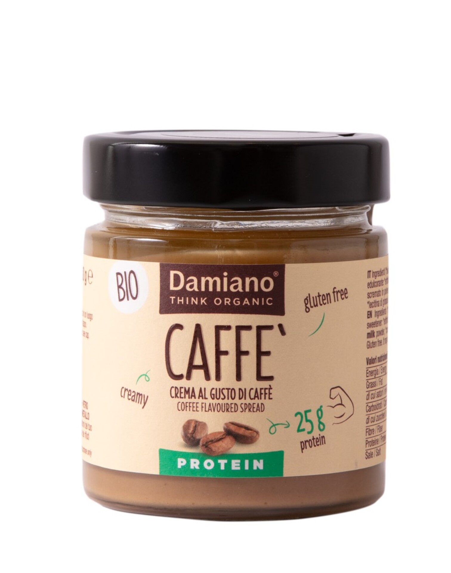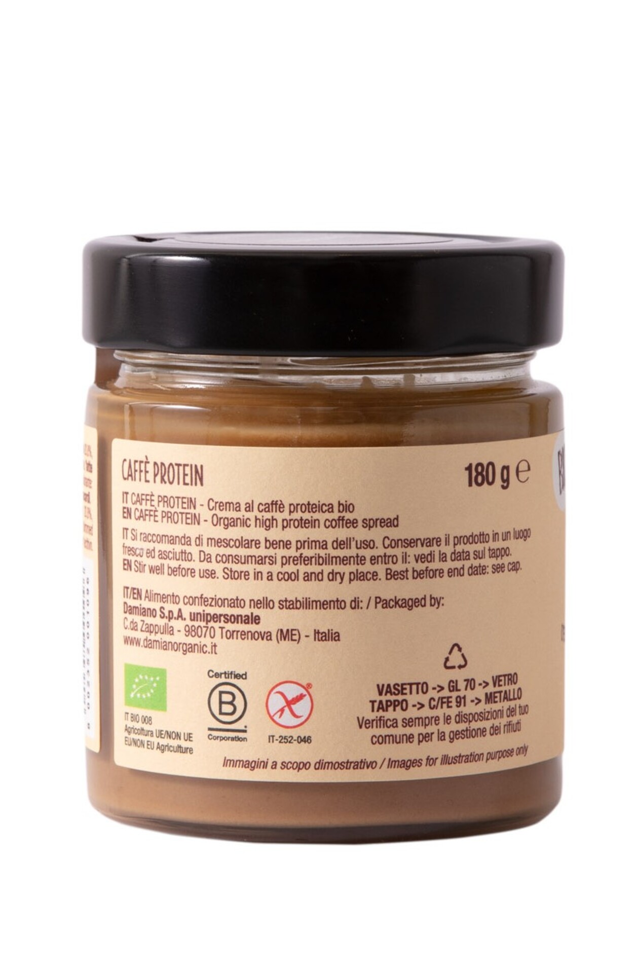 Ingredients (*organic): *Sunflower seed oil, *whey proteins 20.0%, sweetener: *erythritol, *roasted hazelnut paste 10.0%, *rice flour, *inulin, *skimmed milk powder, *cocoa butter, *soluble coffee powder 2.5%, emulsifier: *sunflower lecithin. Gluten free
