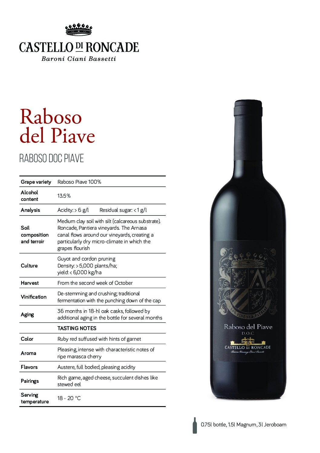 Historic winery in the province of Treviso and near Venice. Beautiful pre-Palladian Veneto villa owned by the Barons Ciani Bassetti family since 1930. Production of Doc Piave, Doc Venezia and sparkling wines.